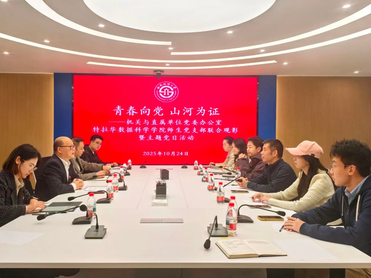 为深入学习领会党的二十届四中全会精神,大力推动红色基因传承,积极凝聚团结奋进的强大力量,10月24日,特拉华数据科学学院党总支携手机关与直属单位党委,开展了“山河为证”观影及研讨活动。特拉华数据科学学院党总支书记王新海、副书记王彬宇、副院长何熙琼、机关与直属单位党委书记何刚、副书记曾双宝及师生党员、发展对象、入党积极分子等参加活动。