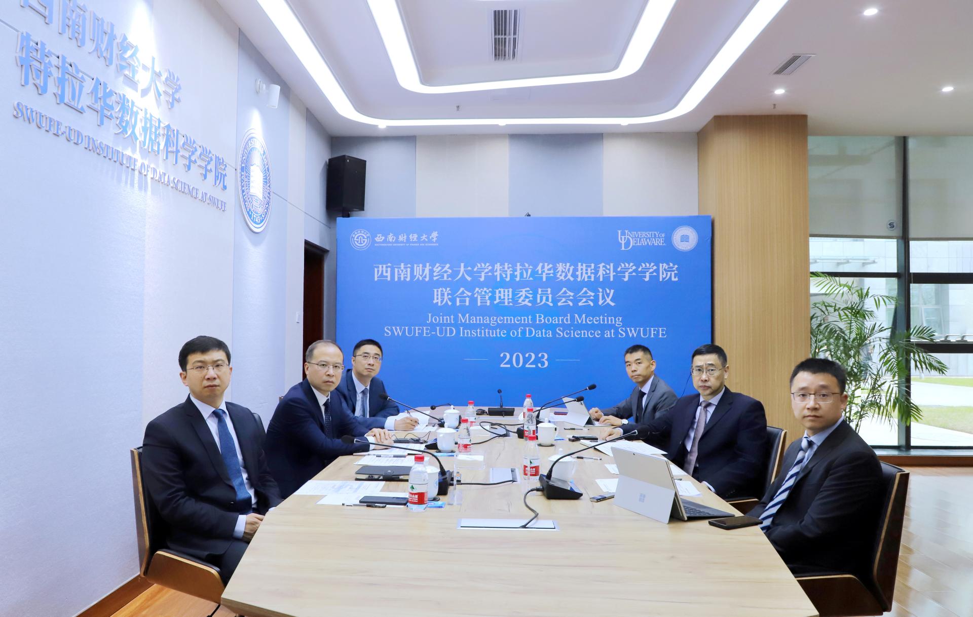 4月7日上午,西南财经大学特拉华数据科学学院联合管理委员会2022-2023学年工作会议以视频连线方式举行。党委副书记、校长卓志,党委副书记、副校长李永强,特拉华大学校长Dennis Assanis,教务长Laura Carlson,副校长Rodney Morrison,两校联合管理委员会委员出席会议。会议由特拉华数据科学学院院长杨石磊主持。